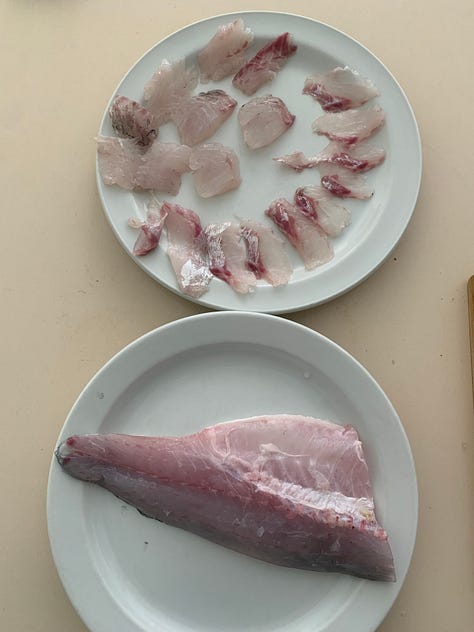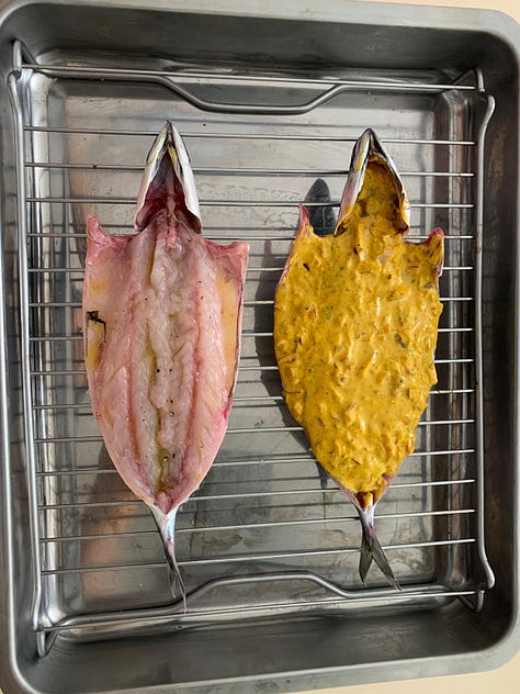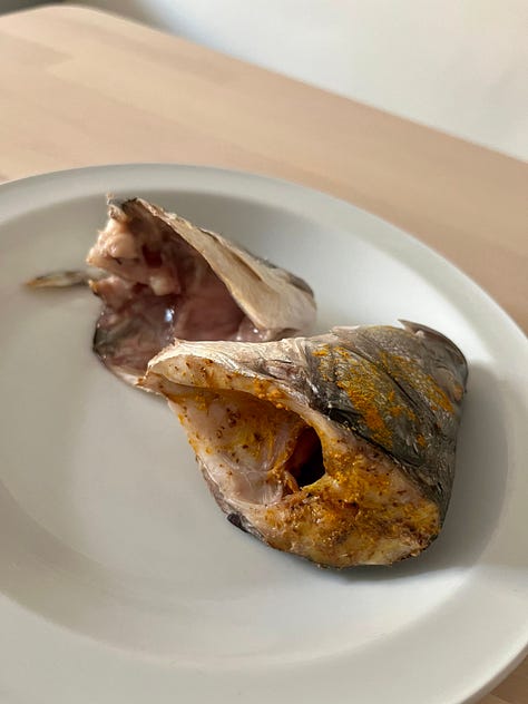 My current go-to source for all things fish is Josh Niland, a chef based in Australia who plays a big role the use-the-whole-fish movement. His book Take One Fish is available in Spanish at the Barcelona public library as Cocina un Pescado. If you continue down the Niland rabbit hole, you’ll end up making ice cream with fish eyes.