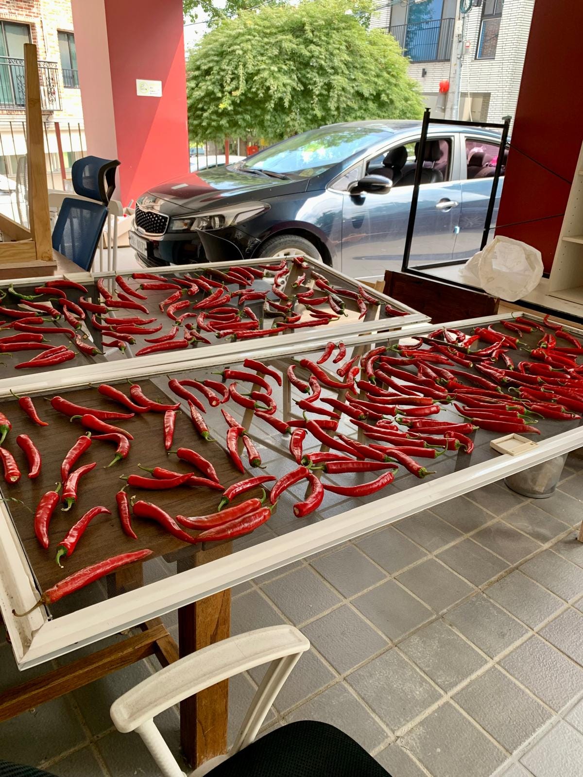 I know I’ve arrived in the right city because people are drying red peppers on screen doors outside my grandmother’s nursing home: